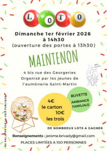 Secretariat Modifier votre photo de couvertureTéléverser Modifier votre photo de couvertureTéléverser Secretariat L’état de ce compte est « Approuvés » À propos À propos Publications Publications Commentaires Commentaires Messe des malades le 15 février Il y a 2 jours dans : actualités aucun commentaire Loto de l’aumônerie Il y a 1 semaine dans : actualités aucun commentaire Vêpres du dimanche soir : changement Il y a 2 semaines dans : actualités aucun commentaire Vœux du curé Il y a 2 semaines dans : actualités aucun commentaire Monastère invisible Il y a 3 semaines dans : actualités aucun commentaire Nouveau parcours Alpha : dimanche 11 janvier 2026 Il y a 3 semaines dans : actualités aucun commentaire Noël avec le secours catholique Il y a 1 mois dans : actualités aucun commentaire Bénédiction des santons Il y a 1 mois dans : actualités aucun commentaire Pastorale de Noël Il y a 2 mois dans : actualités aucun commentaire Parrain d’Avent Il y a 2 mois dans : actualités aucun commentaire charger plus de publications